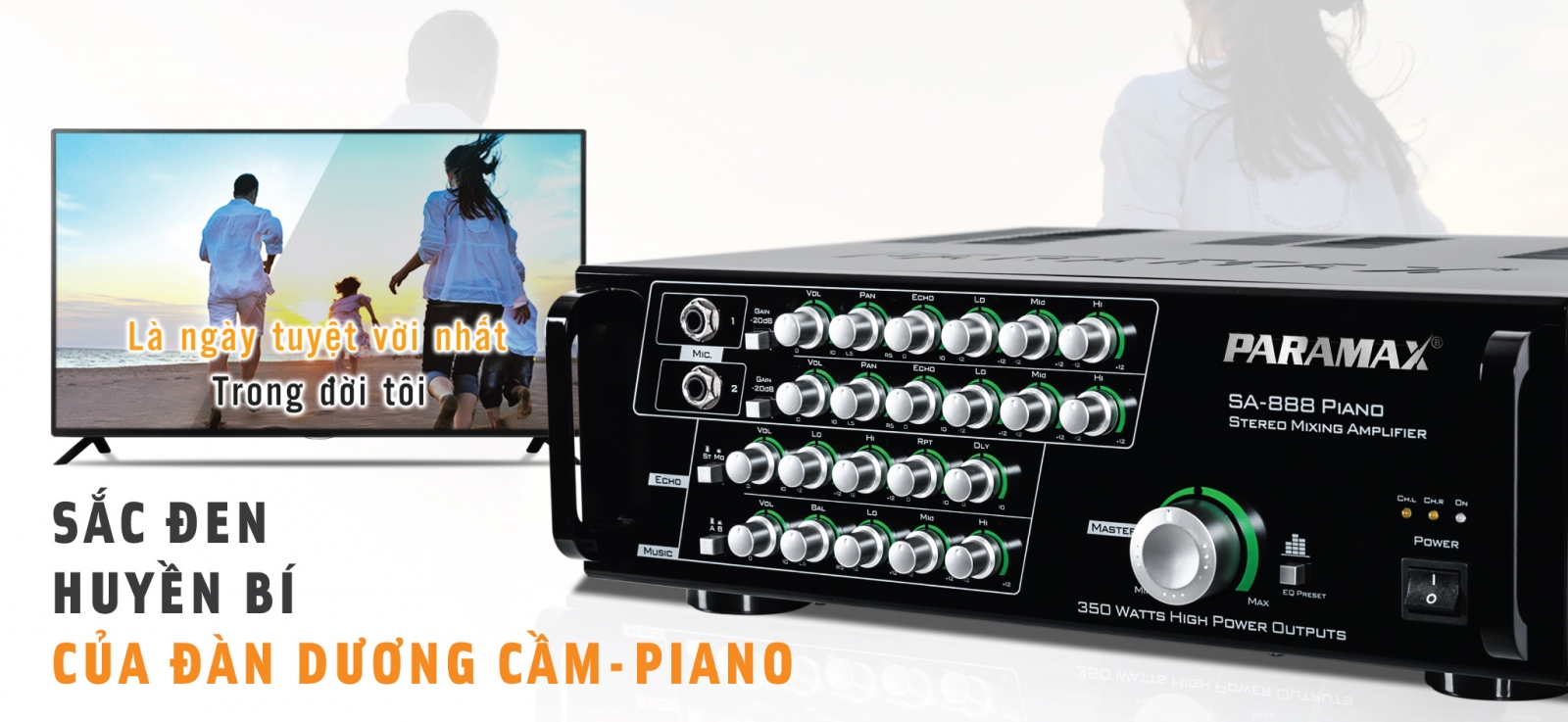 PARAMAX SA-888 Piano được thiết kế hướng tới chất âm tinh tế cùng công suất mạnh mẽ giúp giọng hát trở nên nội lực và cảm xúc. Sản phẩm mới này mang dáng vẻ sang trọng độc nhất này dường như khó có thể tìm thấy trên thị trường ampli karaoke hiện nay. Không chỉ đẹp và nổi bật, ampli SA-888 Piano còn được trang bị nút nhấn EQ Preset tạo hiệu ứng âm thanh Cực mạnh khi tái hiện các dòng nhạc sôi động như EDM, Remix…