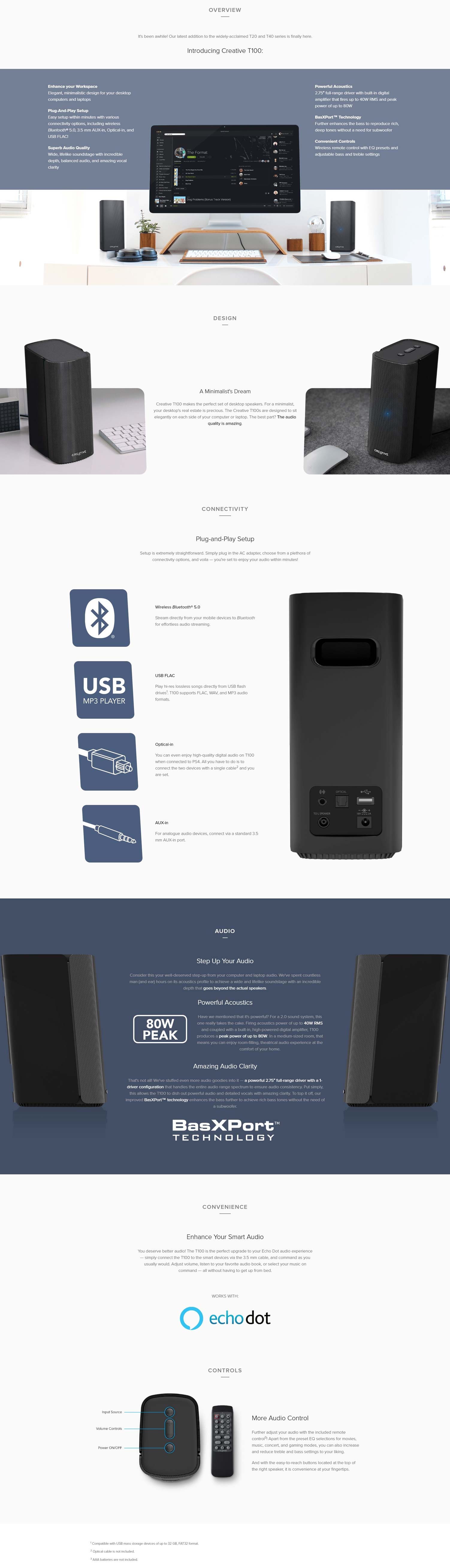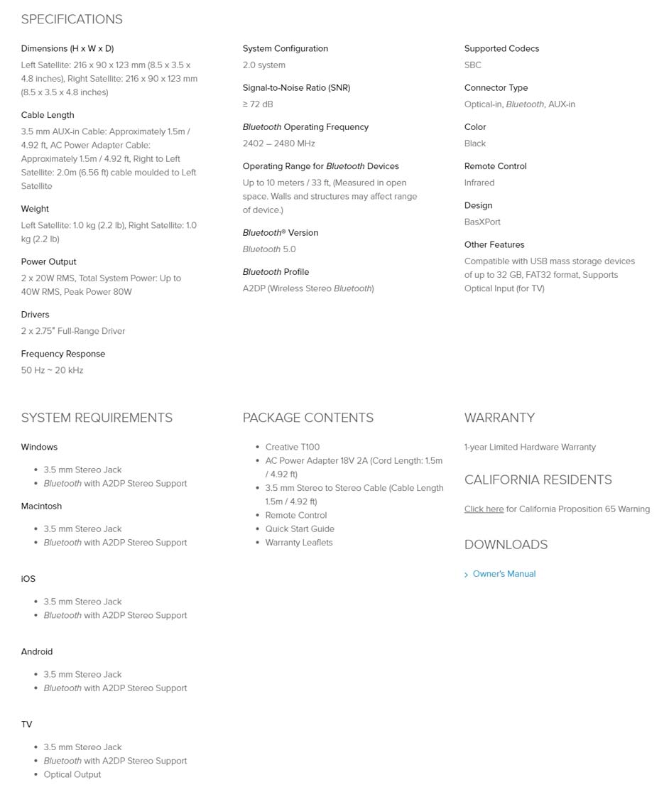 Một số ưu điểm của Creative T100 so với các đối thủ cùng phân khúc có thể kể đến như kích thước nhỏ gọn, chất âm mạnh mẽ, khỏe khoắn, công suất lớn, nếu bố trí hợp lý thì gần như không khác gì một cặp loa có sub rời.
