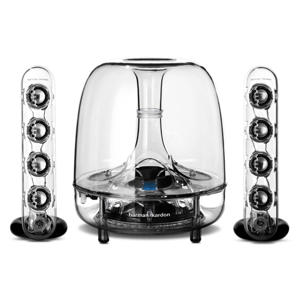 Few multimedia sound systems can boast that their predecessor is part of the permanent collection at New York City’s Museum of Modern Art (MoMA), but that’s exactly the claim the SoundSticks Wireless speaker system can make. Taking its older sibling’s celebrated design even further, the new SoundSticks Wireless’s look is cutting edge, with a modern industrial-design aesthetic, elegant black accents and a luminescent white LED glow. And though the SoundSticks Wireless system may look like a visitor from the future with its transparent speaker covers, its exceptional performance makes it a more than worthy successor to the original, famous SoundSticks system.