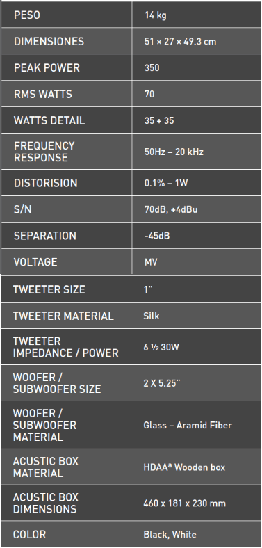Trong loa 2.0 này, Thonet & Vander thiết kế theo ngôn ngữ hình học các đường thẳng, mặt phẳng và độ cao. Chi tiết đó làm cho nó một loa có sức quyến rũ, với đường cong linh hoạt.